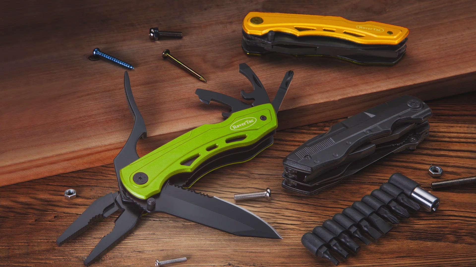 - 【Versatile & Practical Gifts for Men】RoverTac pocket knife features a knife pliers wire cutter, bottle & can opener and a 9-pack screwdriver bits set for almost any tasks.